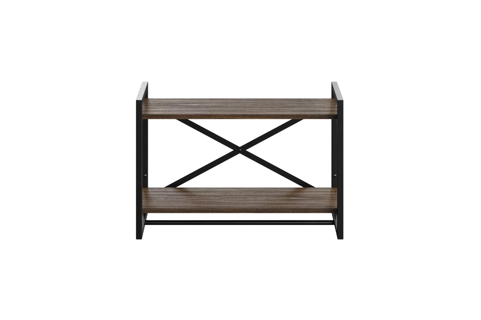 Многофункциональная декоративная полка навесного типа крепится на стену при помощи шурупов (имеет специальные заглушки для скрытого крепления). В комплект поставки входит два металлических основания, два настила ЛДСП, крепёж. Каркас – металлический, прочный с влагостойким полимерным покрытием чёрного цвета, которое легко моется и остаётся привлекательным долгое время. У полки 2 яруса, высота 47 см, ширина 69 см, глубина 25 см. Конструкция надёжная, не гнётся и не деформируется при эксплуатации.