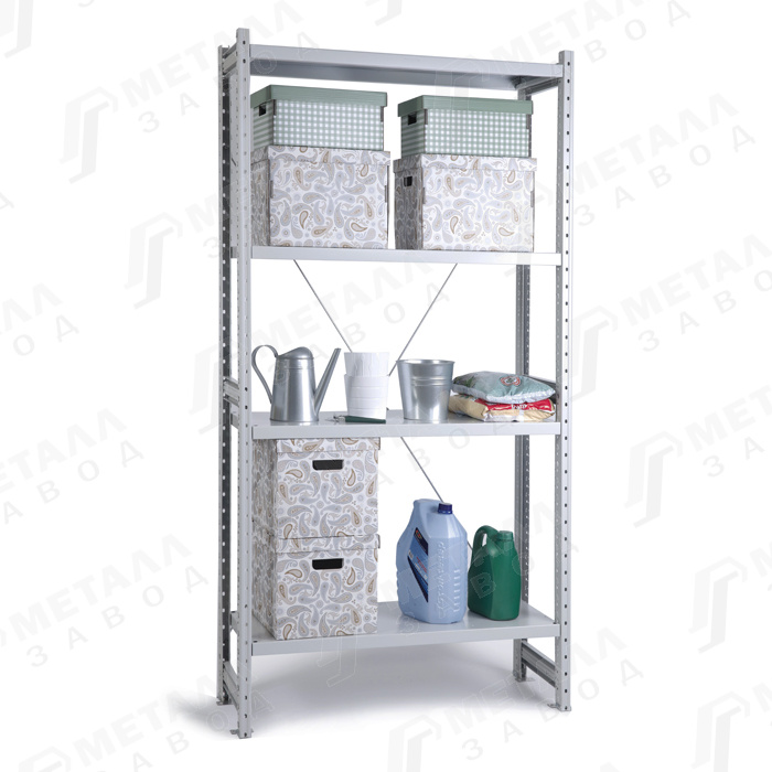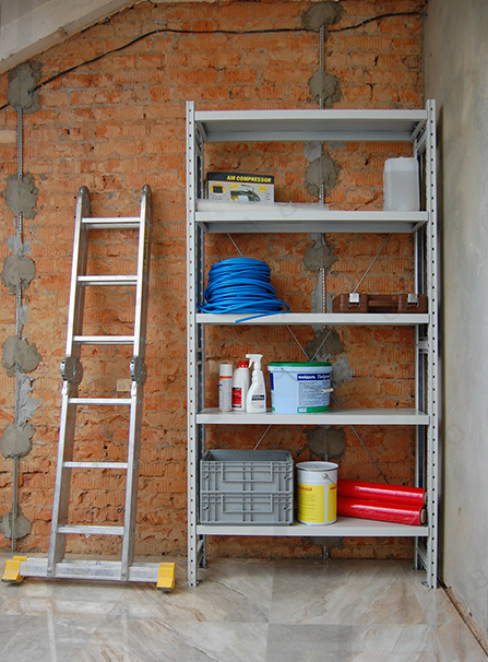 - Все элементы стеллажа окрашены полимерной (порошковой) краской RAL 7035 светло-серого цвета.